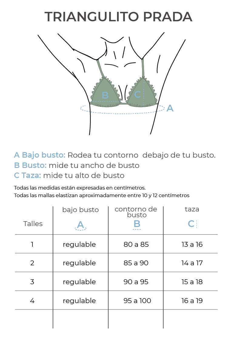 Se trata de un diseño juvenil, con tiras para anudar en cuello y espalda media. Se destaca por los volados en los bordes de las tazas, lo que le da un toque delicado y femenino.
